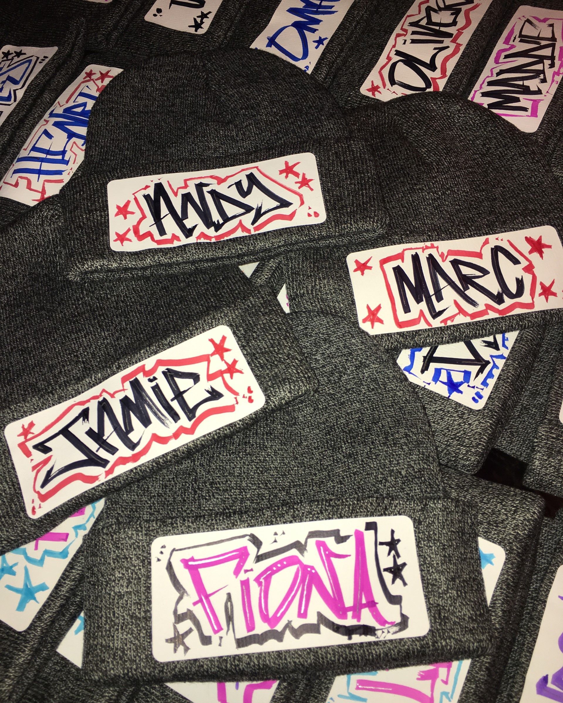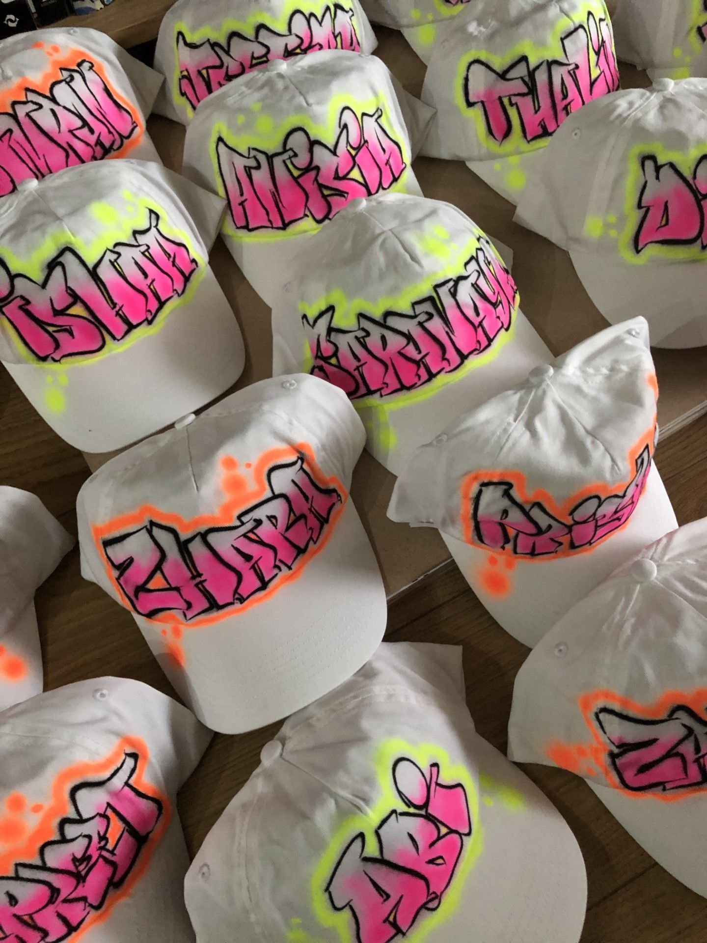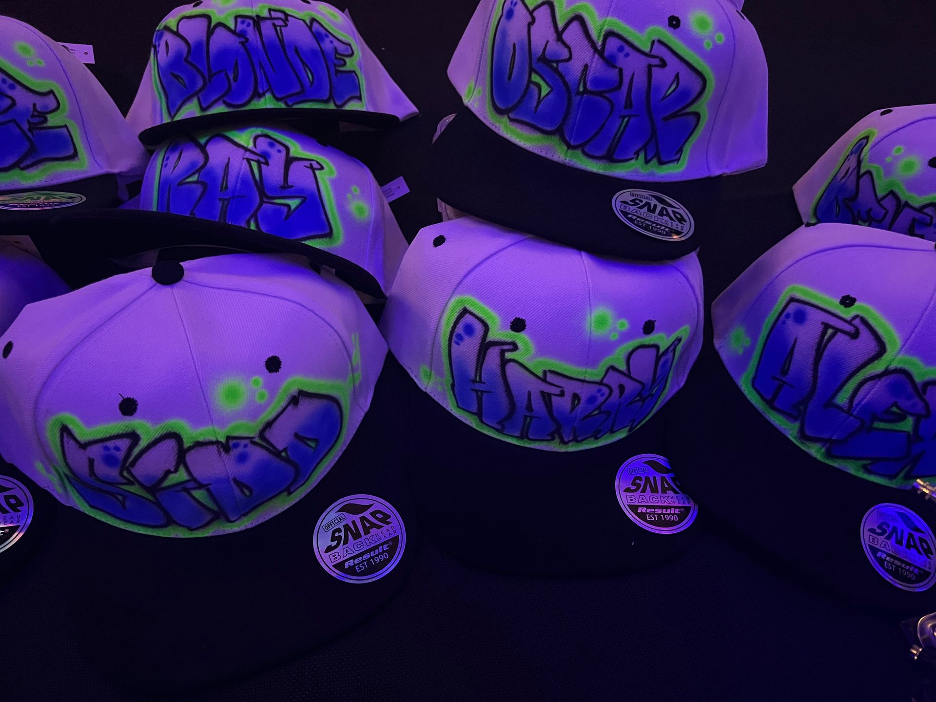 Airbrushed Snapbacks, T-shirts, hoodies and other attire are popular choices, as well as signing boards, backdrops and other visuals.