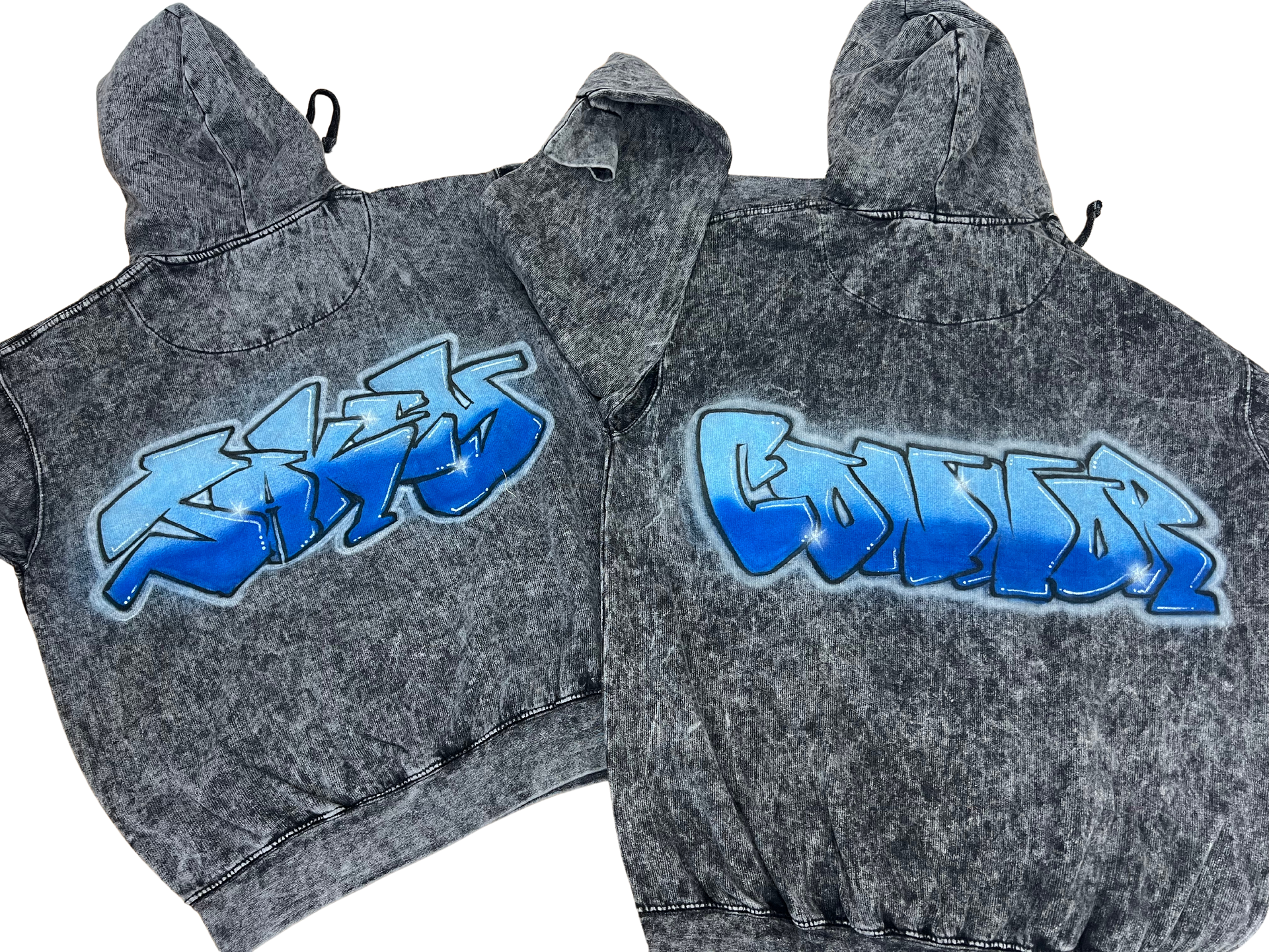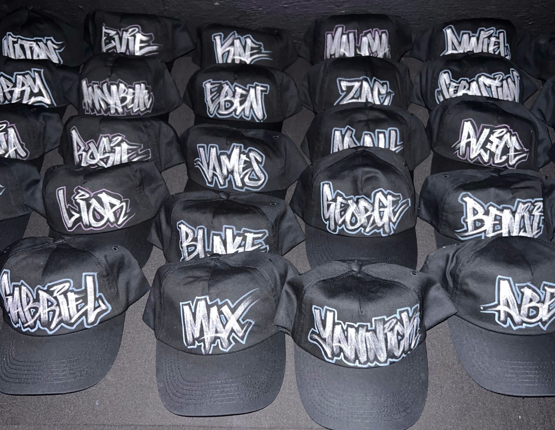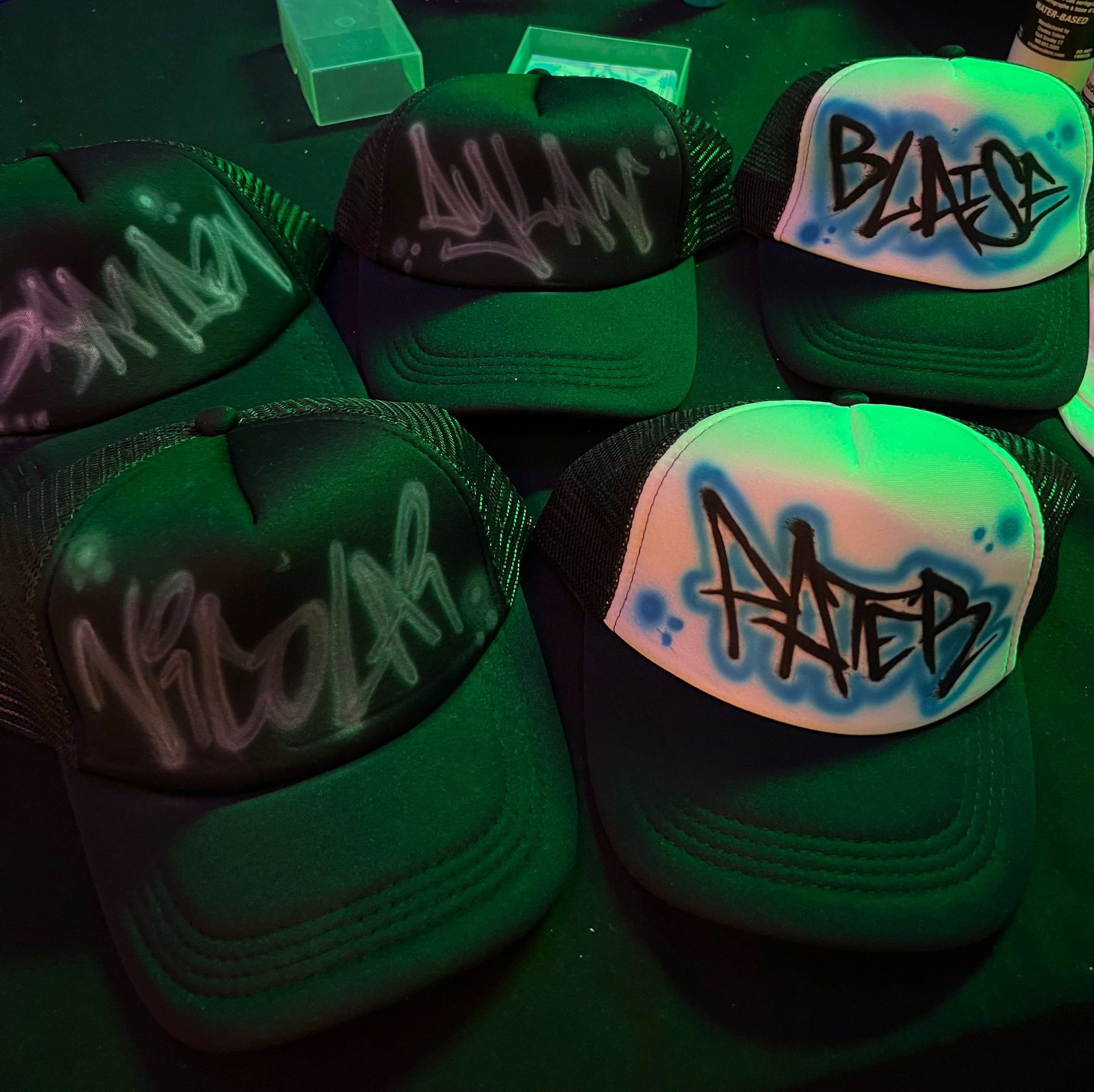 Airbrushed Snapbacks, T-shirts, hoodies and other attire are popular choices, as well as signing boards, backdrops and other visuals.